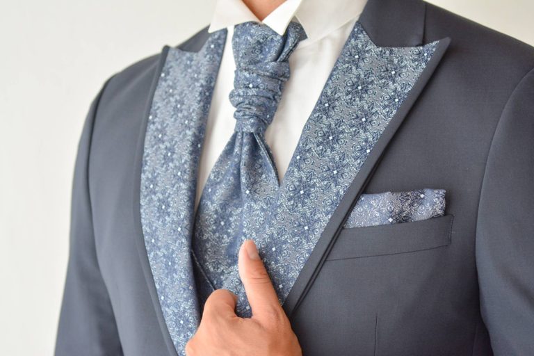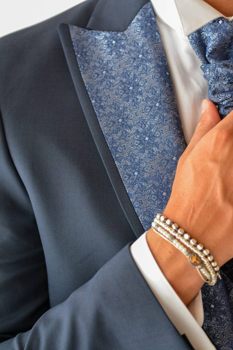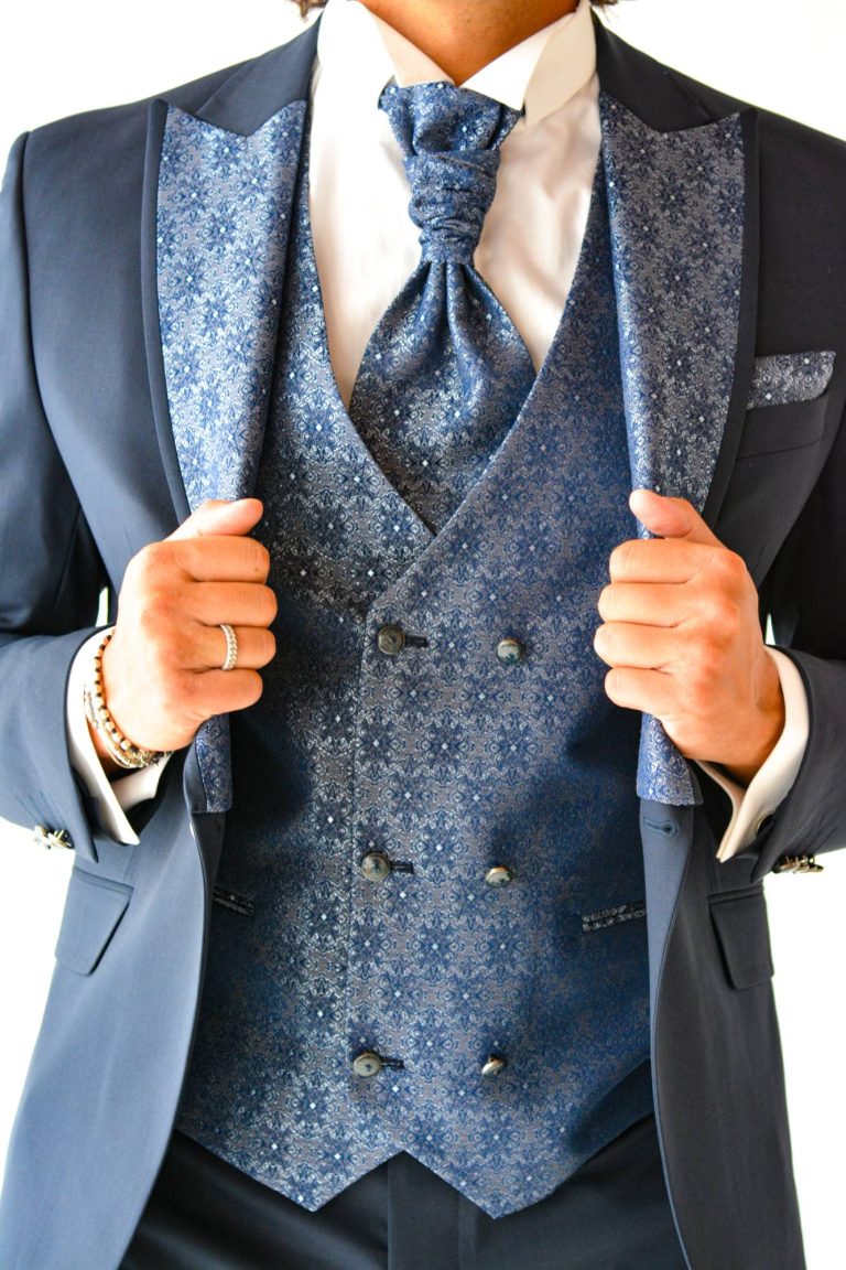 Questo abito da sposo è originale e sorprendente, il suo collo punta lancia con motivo Jacquard è staccabile, per avere un effetto doppia immagine!