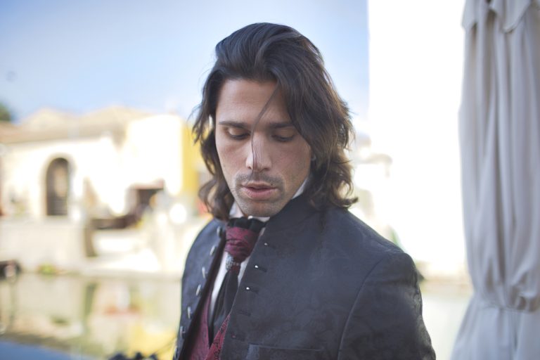 Il vero ed autentico Made in Italy. Il modello “Decio” è indiscutibilmente affascinante, una giacca marsina damascata in nero inteso e bordeaux, anche il pantalone è damascato tono su tono, disponibile anche tinta unita.