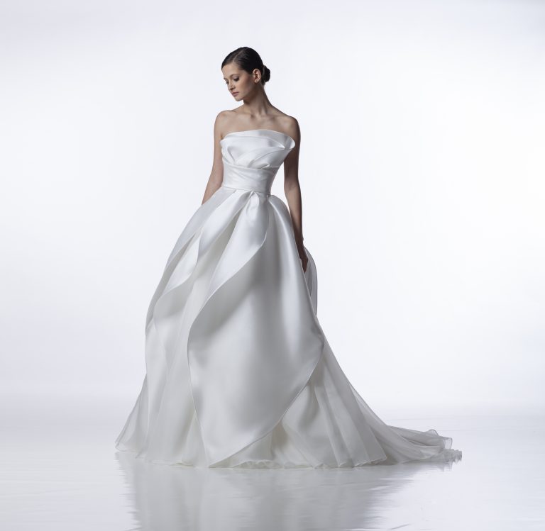 Un’interpretazione moderna, questo modello diventerà iconico, un abito da sposa di alta moda ricco di stile e classe.