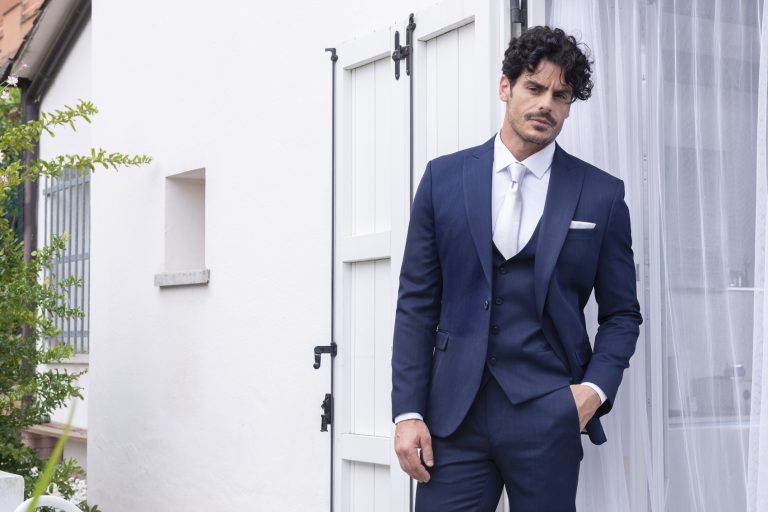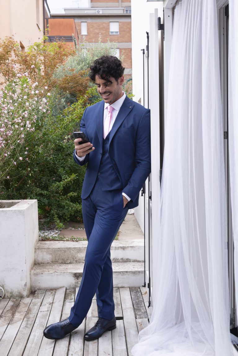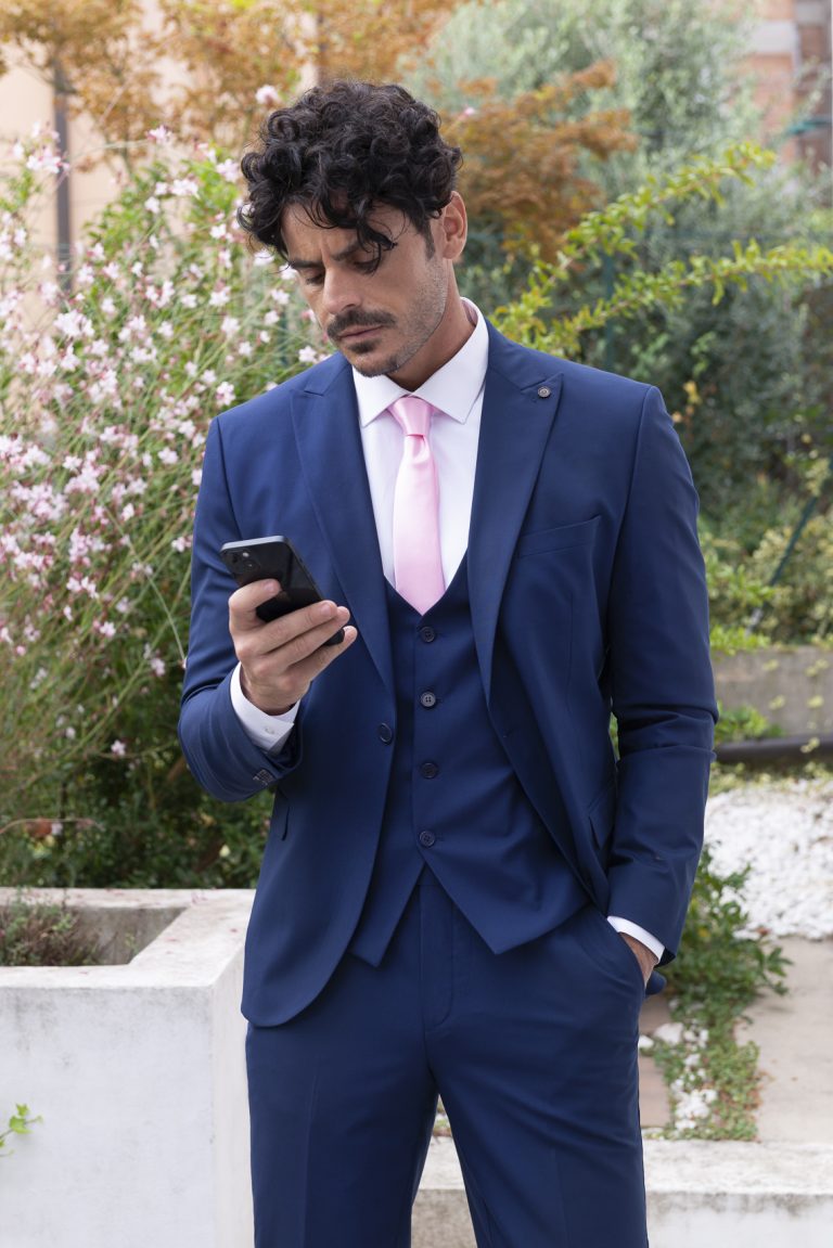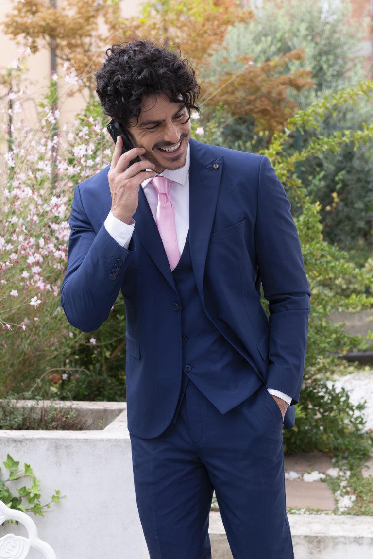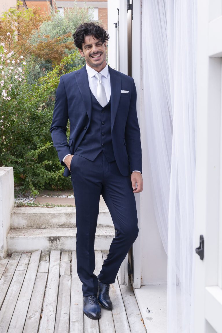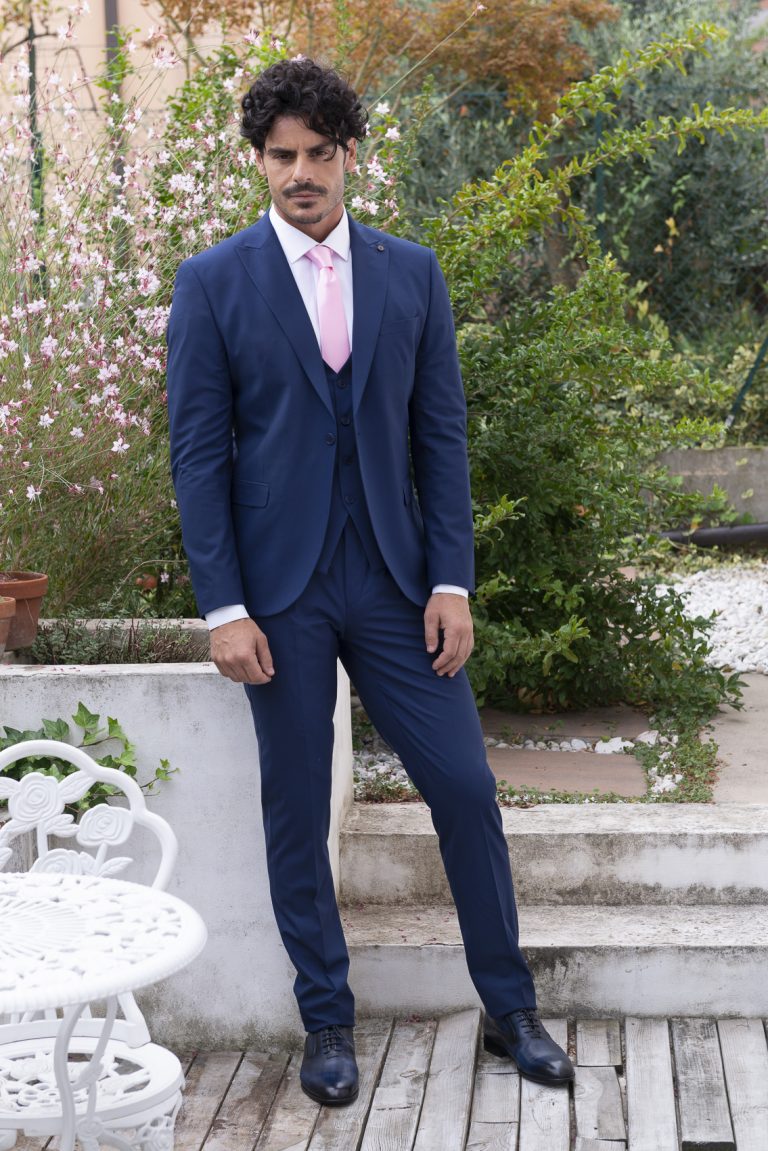 Abito da sposo classico e molto versatile con giacca collo punta lancia.