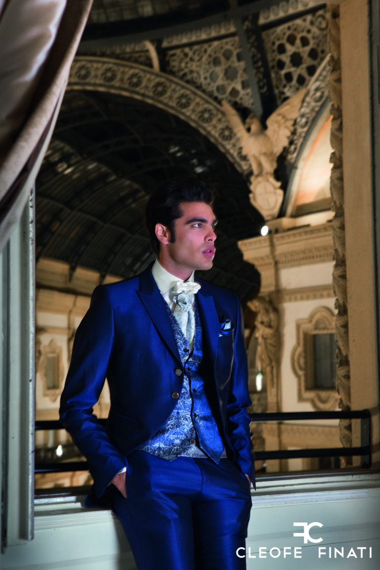 Uno degli abiti da sposo uomo più innovativi, che rielabora la giacca di Charlie Chaplin e propone un abito da sposo uomo couture unico.