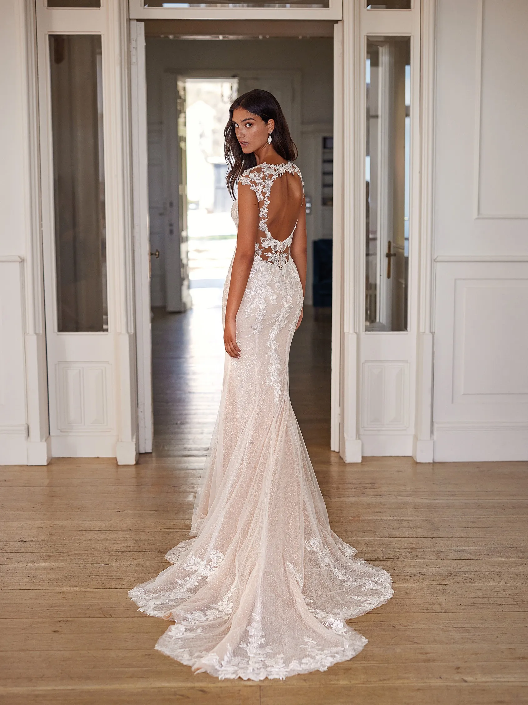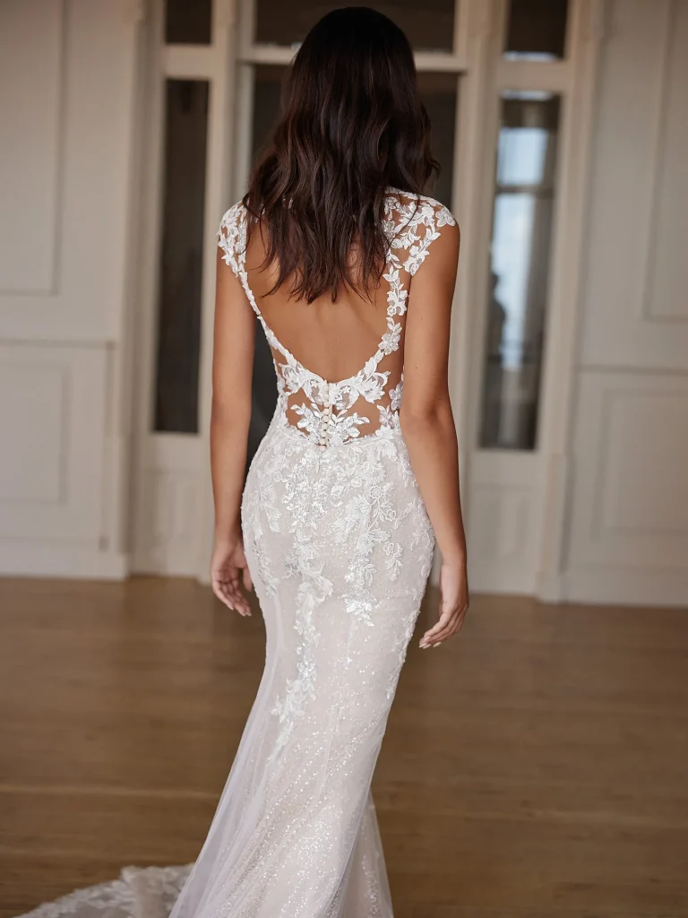 Abito da sposa a sirena realizzato in pregiato pizzo.