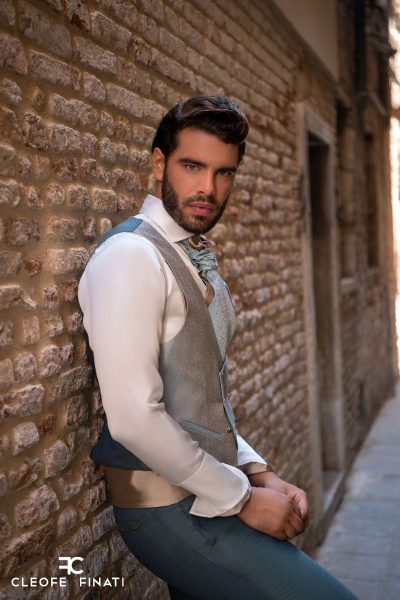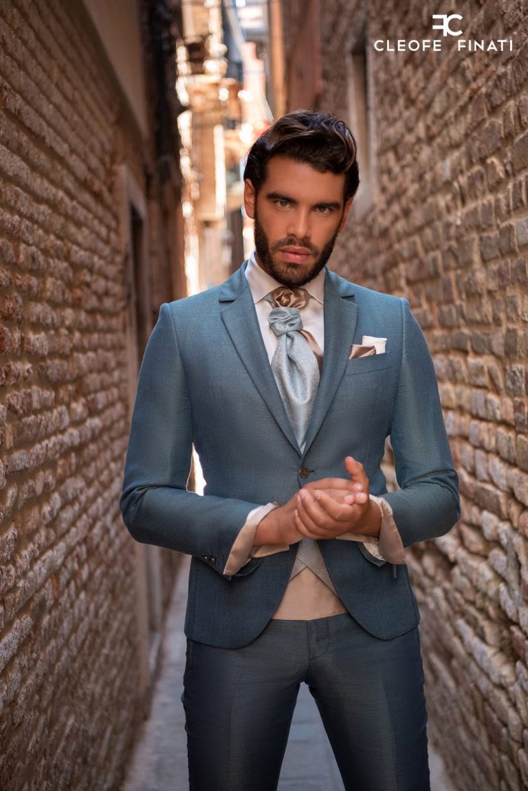 Abito da sposo verde monopetto uomo linea classica fashion da poter indossare in qualunque occasione realizzato in raso di lana e seta made in Italy 100%. Meraviglioso nel suo total looK