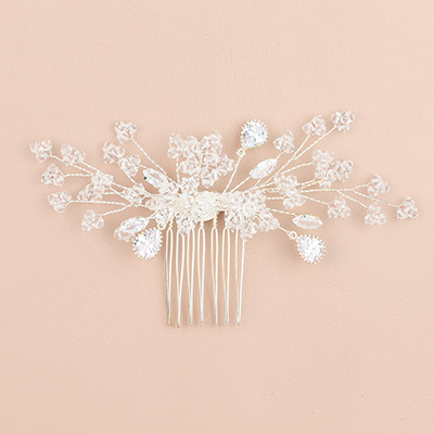 Romantico pettinino da sposa con fiori in rilievo e cristalli luminosi. Perfetto per acconciature eleganti e di classe.