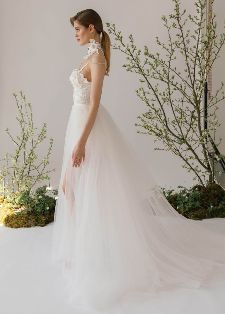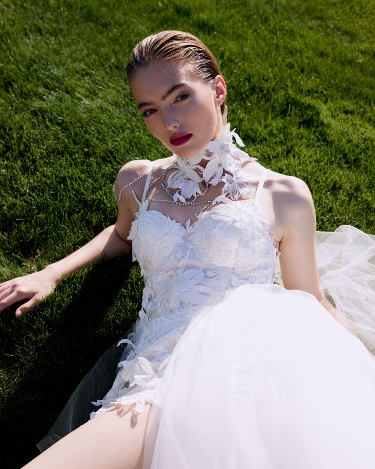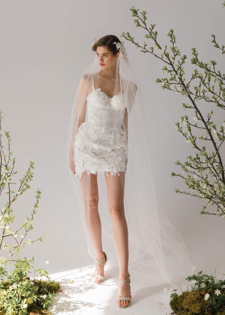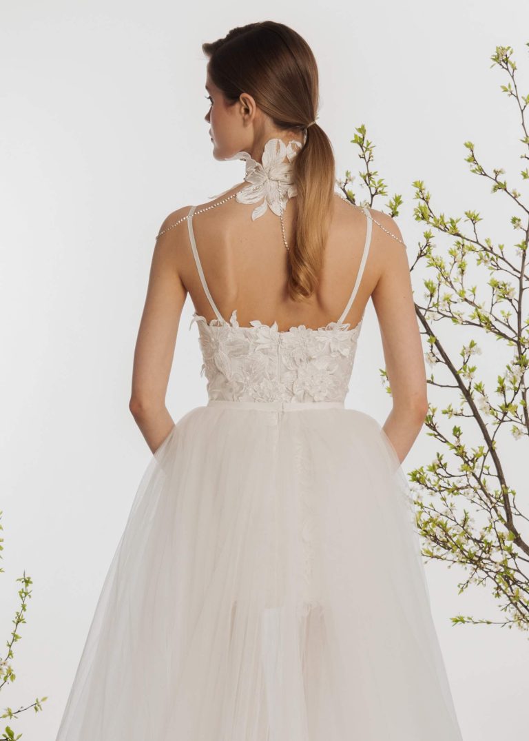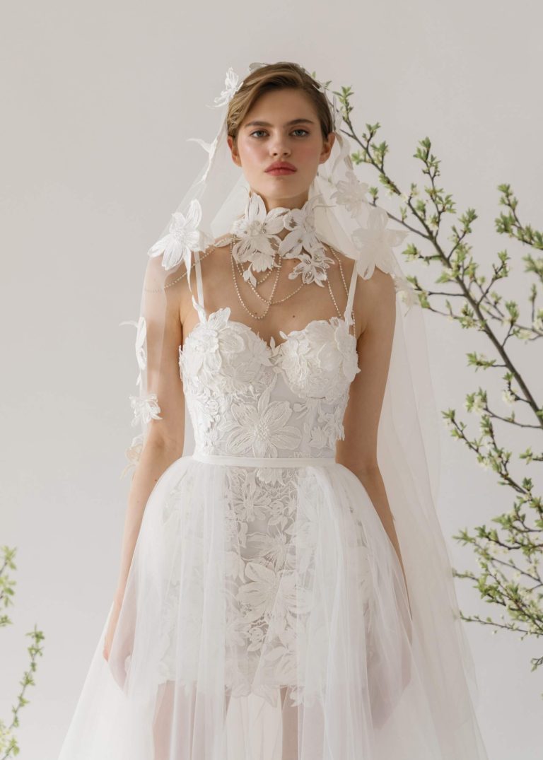 Mini wedding dress by Rara Avis. Solano è un abito da sposa romantico ma frizzante, realizzato in pregiato pizzo e morbido tulle. Sceglilo se desideri un look versatile, originale e tremendamente di tendenza!