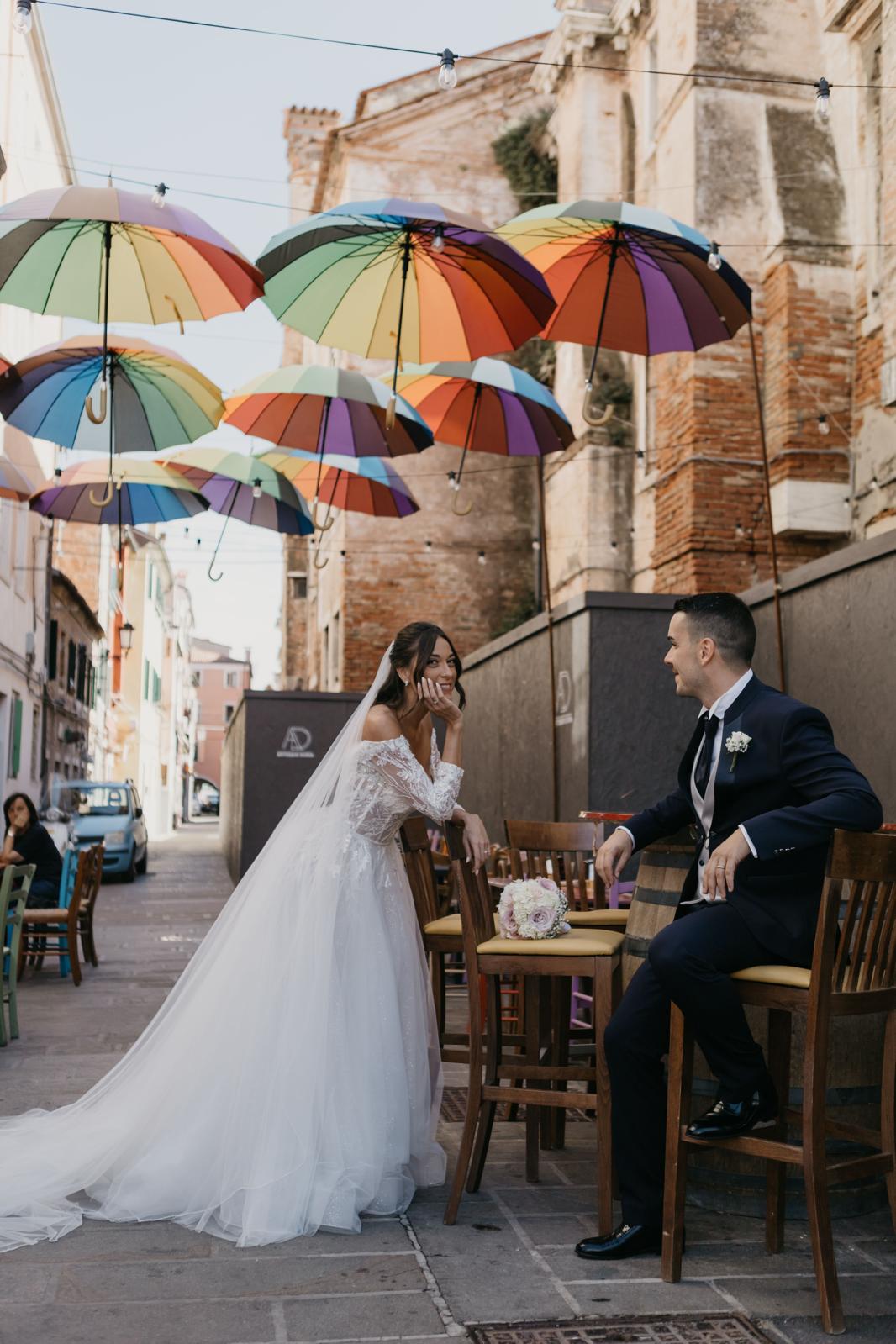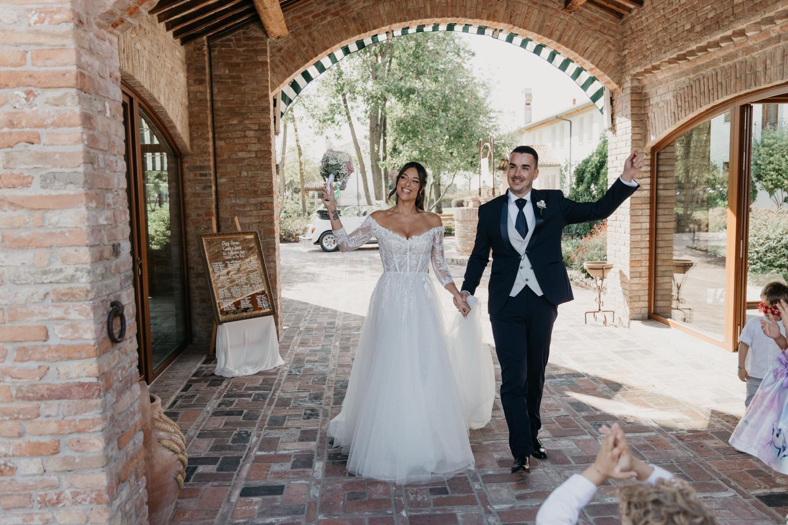 Eleganza e complicità hanno definito ogni dettaglio. I loro abiti, scelti con stile e personalità, hanno aggiunto carattere a un matrimonio pieno di emozione.